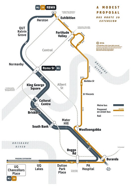 Meanwhile, statewide advocacy group Better Transport Queensland (BTQ) is taking a broader utilitarian approach, suggesting an extension of the 29 bus route from the University of Queensland to the Royal Brisbane Hospital with more frequent services, which would eliminate the 234 bus.